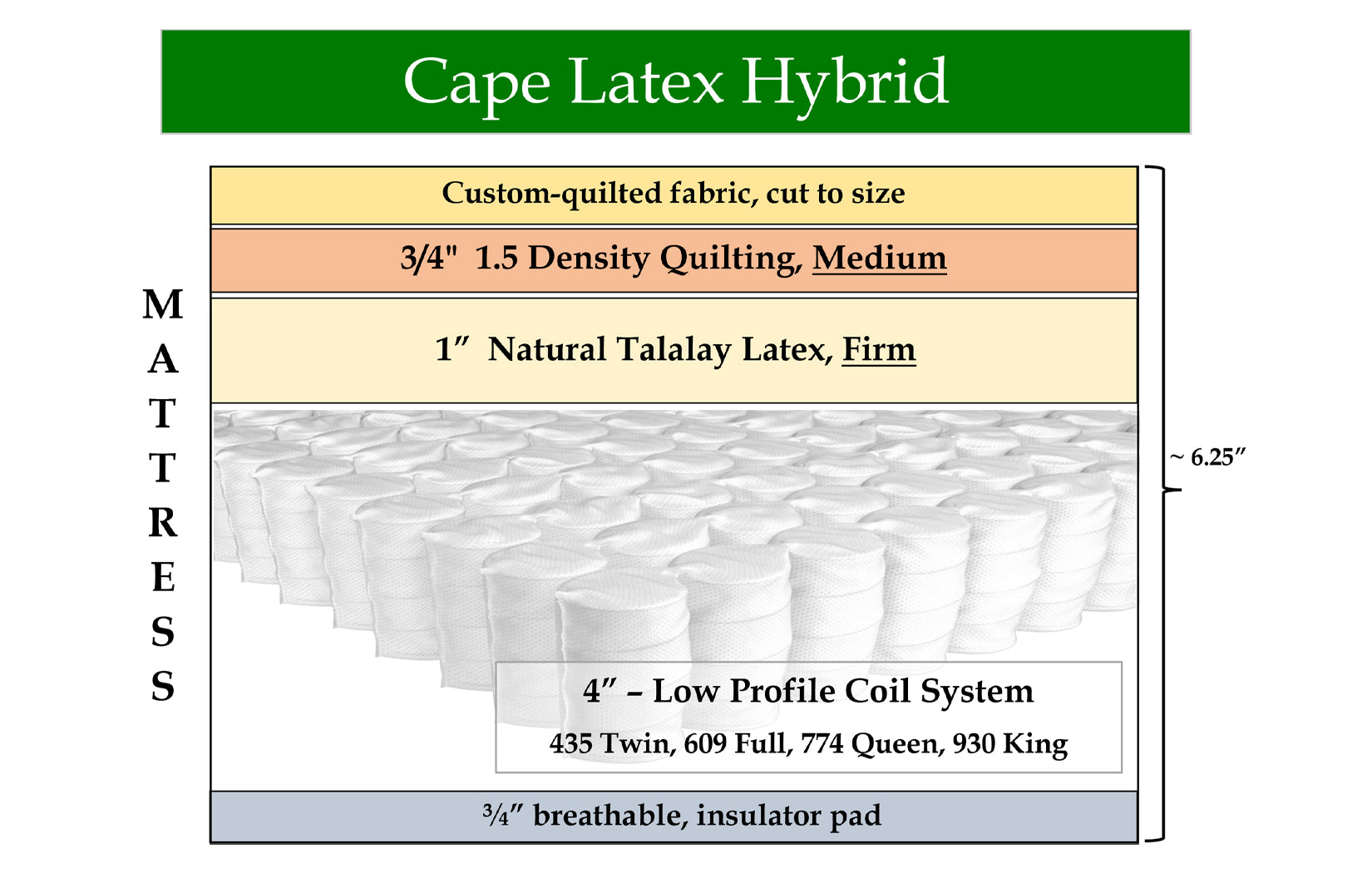 Cape Latex Hybrid, custom mattress - 20" to 38" / 50" to 75" is backordered and will ship as soon as it is back in stock.