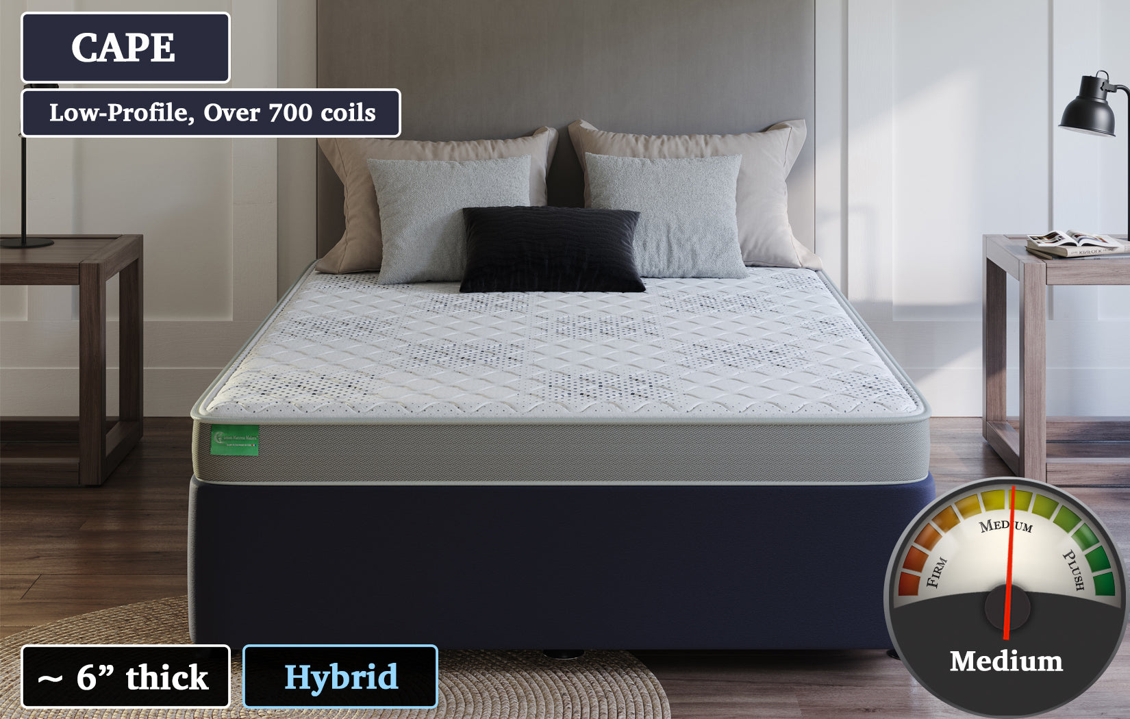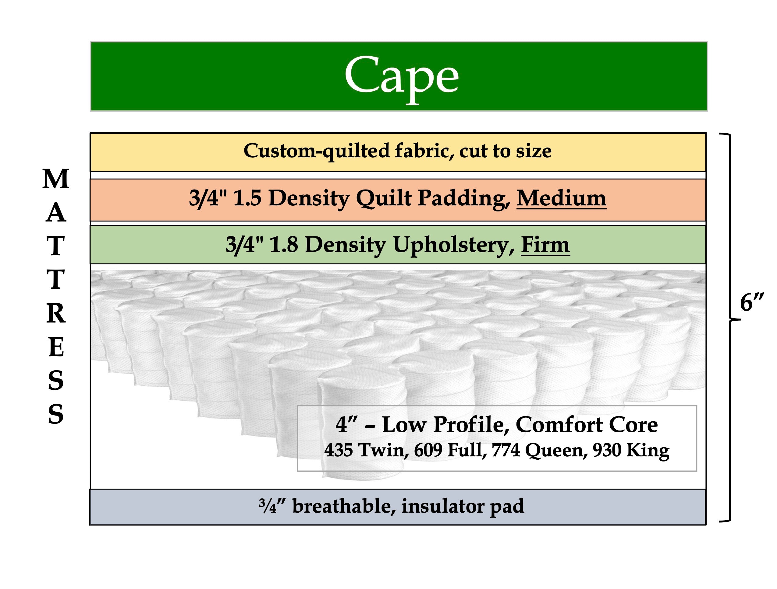 Cape Hybrid, custom mattress - 20" to 38" / 50" to 75" is backordered and will ship as soon as it is back in stock.